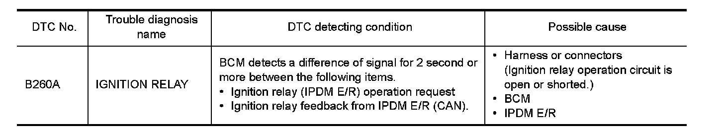 - If DTC B260A is displayed with DTC U1000, first perform the trouble diagnosis for DTC U1000. Refer to