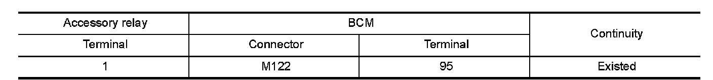 3.Check continuity between accessory relay harness connector and BCM harness connector.