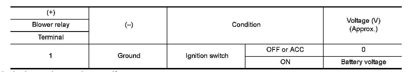 2.Check voltage between blower relay harness connector and ground.
