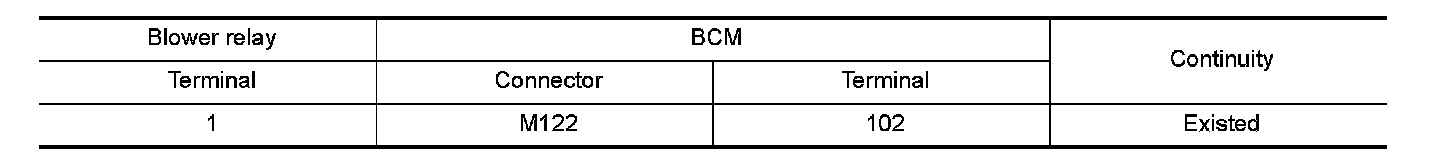 3.Check continuity between blower relay harness connector and BCM harness connector.