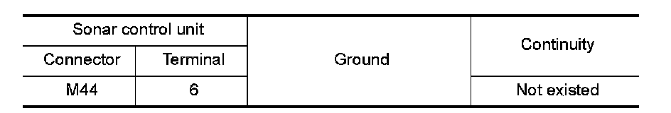 Check continuity between sonar control unit harness connector and corner sensor rear RH harness connector.