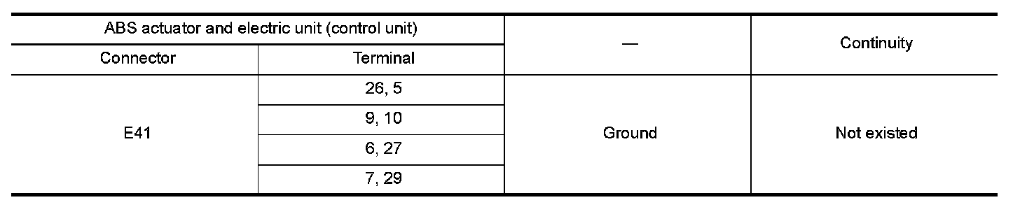 5.Check the continuity between ABS actuator and electric unit (control unit) harness connector and the ground.