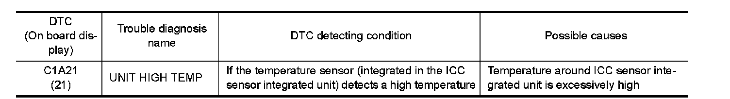 Adjust the laser beam aiming of the ICC sensor integrated unit. Refer to "LASER BEAM AIMING ADJUSTMENT : Description" Description.