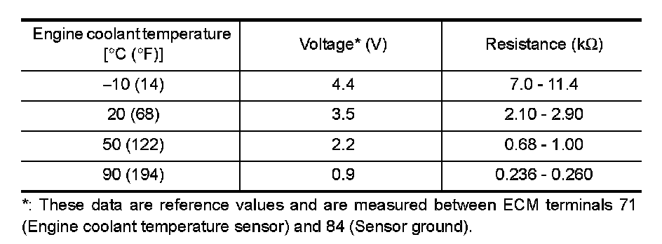 The engine coolant temperature sensor is used to detect the engine coolant temperature. The sensor modifies a voltage signal from the