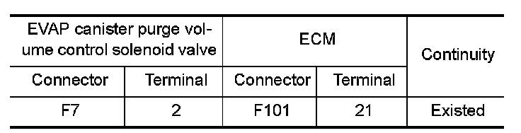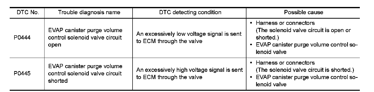 - Harness for open or short between EVAP canister purge volume control solenoid valve and ECM