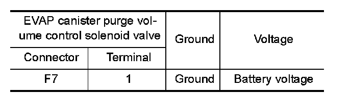 4.Check the voltage between EVAP canister purge volume control solenoid valve harness connector and ground.