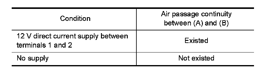 4.Check air passage continuity of EVAP canister purge volume control solenoid valve under the following conditions.