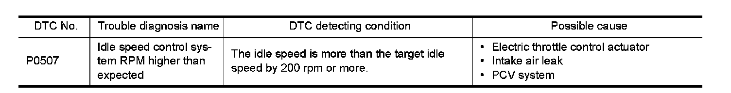 If DTC P0507 is displayed with other DTC, first perform the trouble diagnosis for the other DTC.
