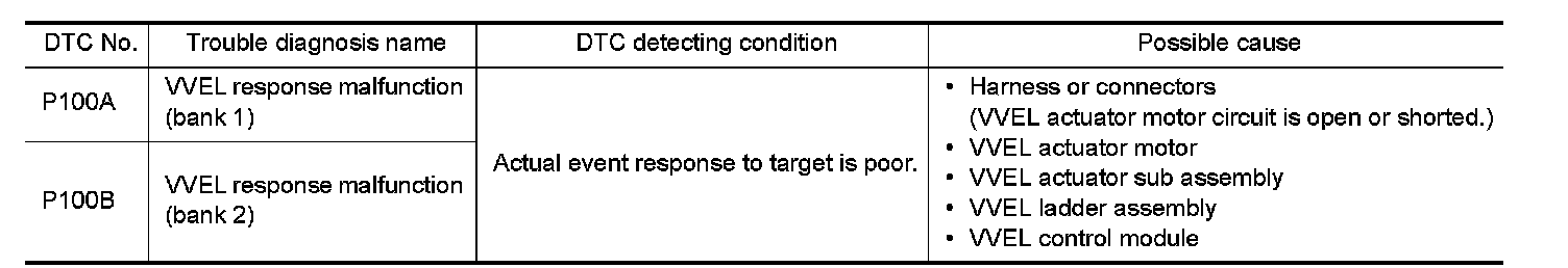 - Harness for open or short between VVEL actuator motor and VVEL control module