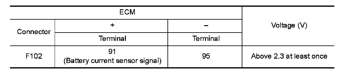 Use component function check to check the overall function of the battery current sensor circuit. During this check, a 1st trip DTC might not be confirmed.