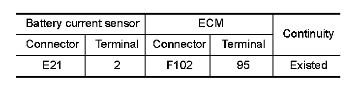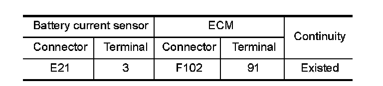 1.Check the continuity between battery current sensor harness connector and ECM harness connector.