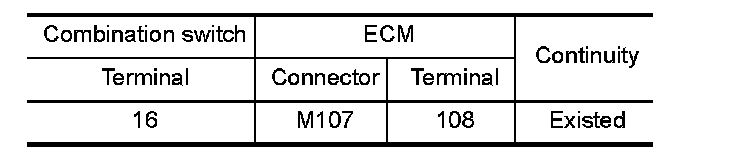 1.Check the continuity between combination switch and ECM harness connector.