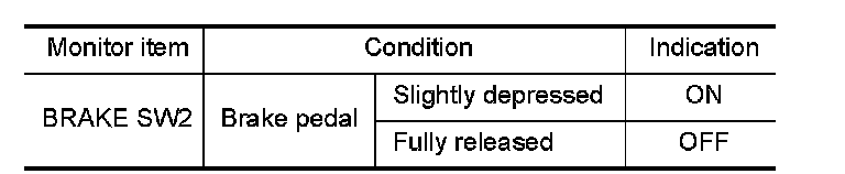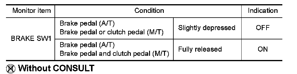2.Select "BRAKE SW1" in "DATA MONITOR" mode with CONSULT.