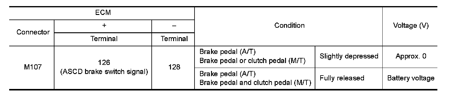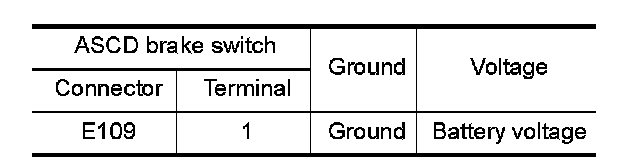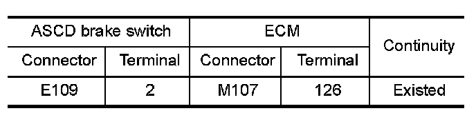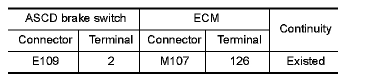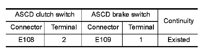 2.Check the continuity between ASCD brake switch terminals under the following conditions.