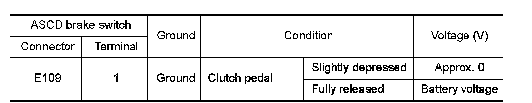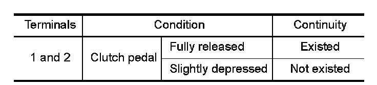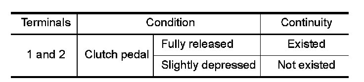 2.Check the continuity between ASCD clutch switch terminals under the following conditions.