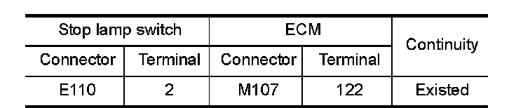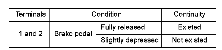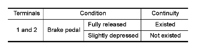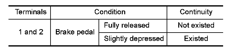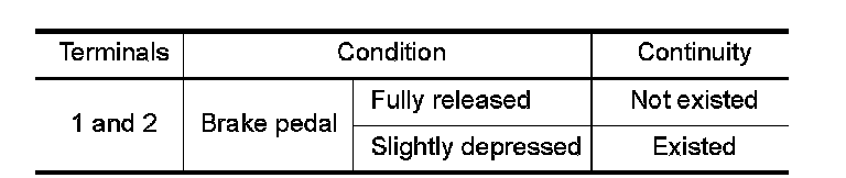 2.Check the continuity between stop lamp switch terminals under the following conditions.