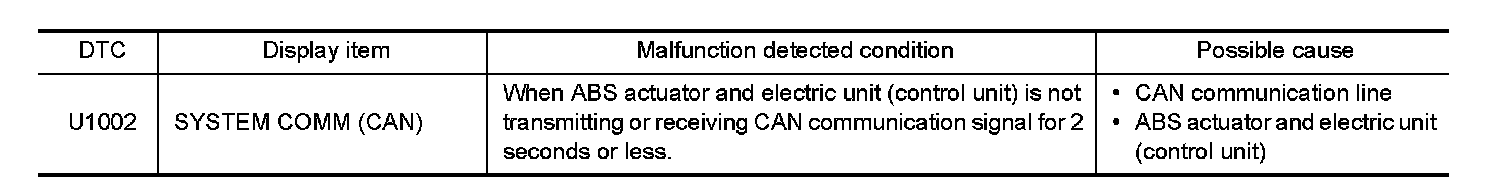 2.Check the malfunction history between each control unit connected to ABS actuator and electric unit (control unit).