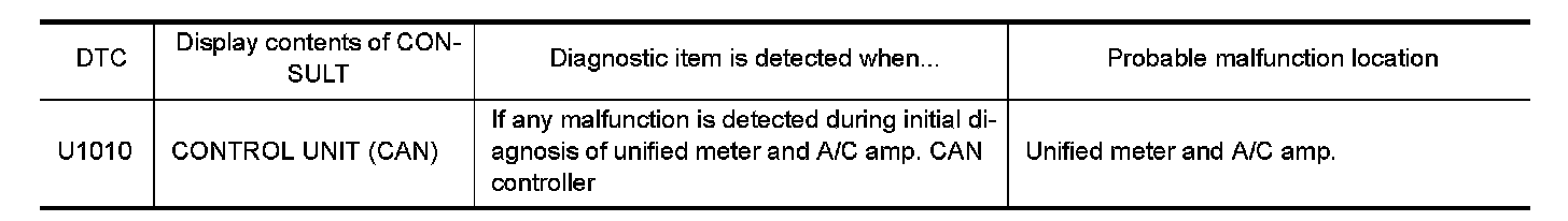When DTC "U1010" is detected, replace unified meter and A/C amp.