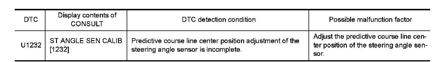 When U1232 is detected, adjust the predictive course line center position of the steering angle sensor.
