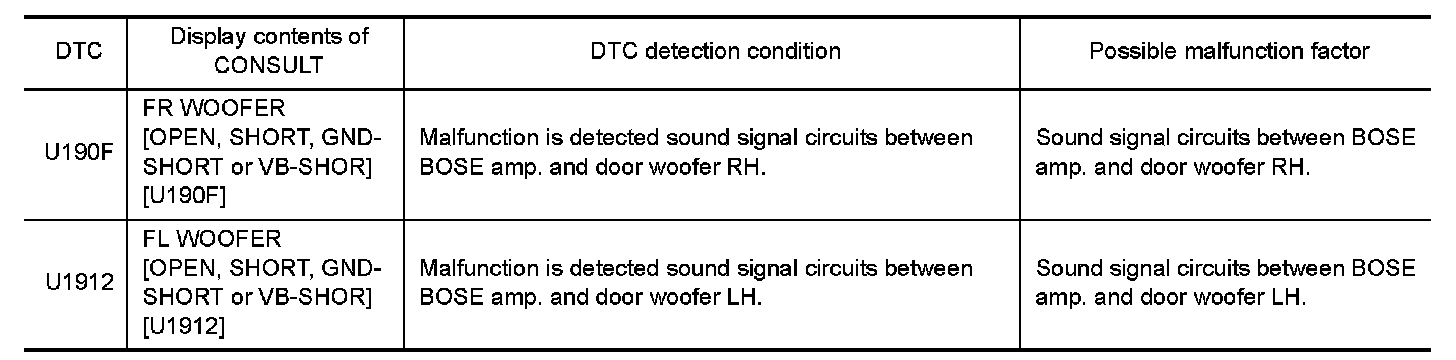 YES-2 - U19012 Check harnesses between BOSE amp. and door woofer LH.