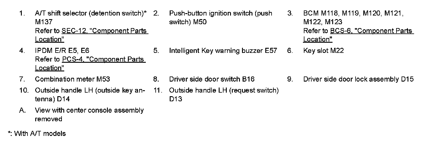 REMOTE KEYLESS ENTRY FUNCTION : Component Parts Location