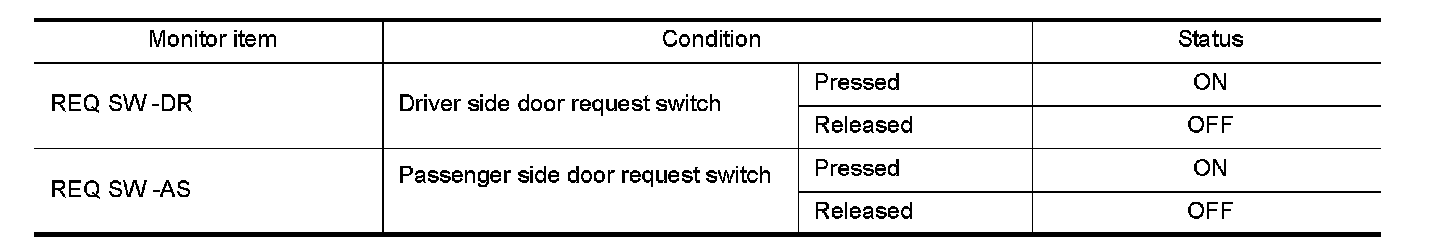 Check ("REQ SW -DR" or "REQ SW -AS") in BCM "Data Monitor" mode using CONSULT.