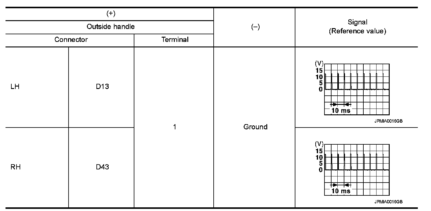 3.Check signal between malfunctioning outside handle harness connector and ground using oscilloscope.