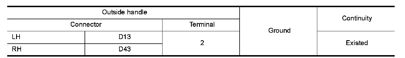 3.Check continuity between malfunctioning outside handle harness connector and ground.