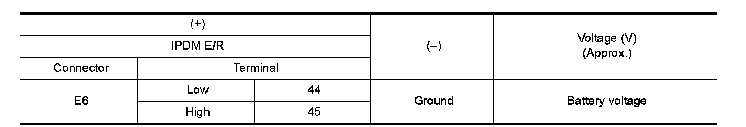 2.Check voltage between malfunctioning IPDM E/R harness connector and ground.