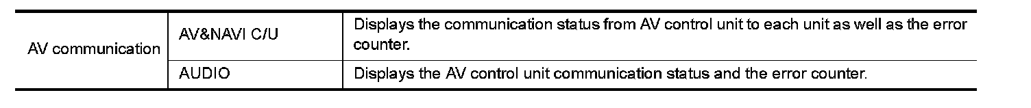 When "AV communication" of "CAN Diag Support Monitor" is selected, the following function will be performed.