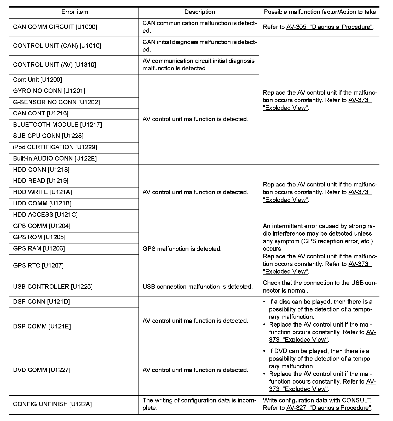 DIAGNOSIS SYSTEM (AV CONTROL UNIT)
