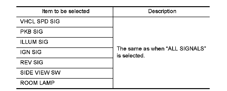 Allows the technician to select which vehicle signals should be displayed and displays the status of the selected vehicle signals.