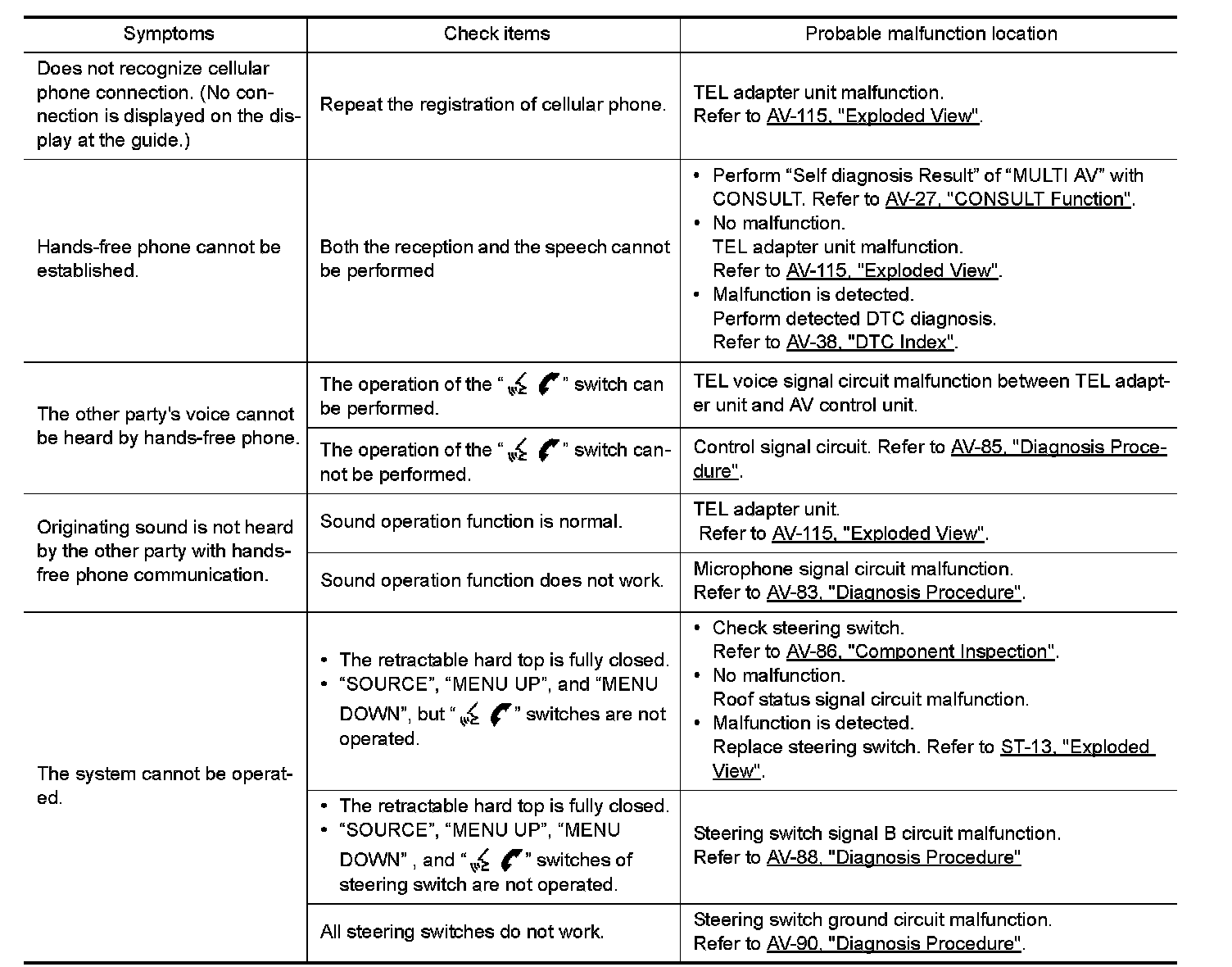 - It is possible that a malfunction is occurring due to a version change of the phone even though the phone is a compatible type. This can be confirmed by changing the cellular phone to another compatible type, and checking that it operates normally. It is important to determine whether the cause of the malfunction is the vehicle or the cellular phone.