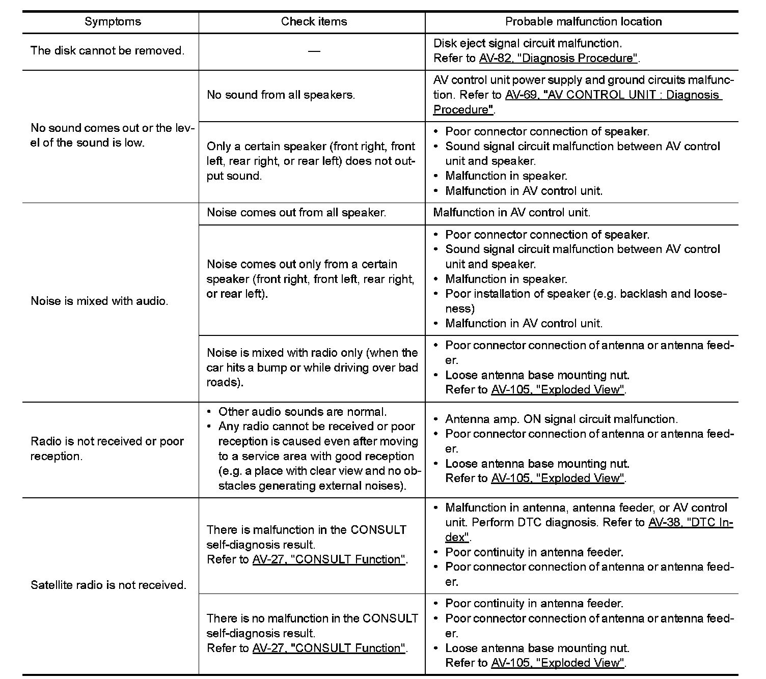 Trouble Diagnosis Chart by Symptom