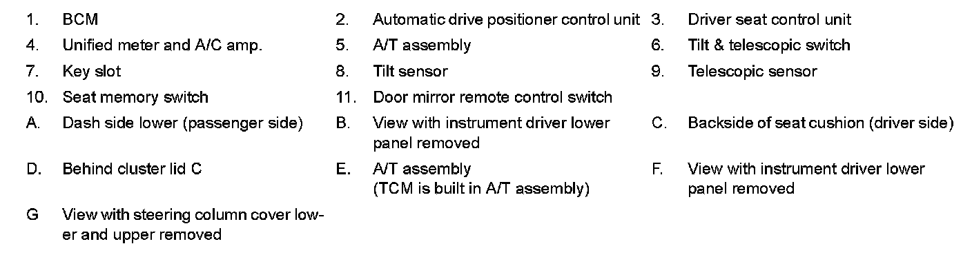 SEAT SYNCHRONIZATION FUNCTION : Component Parts Location