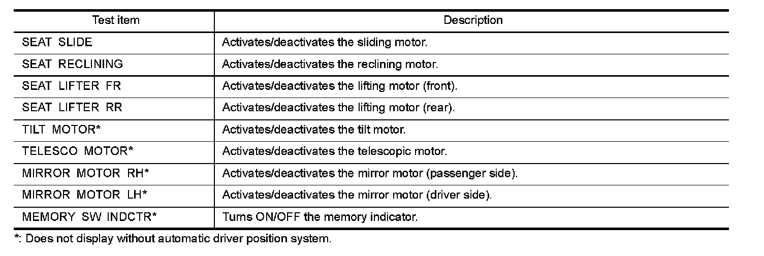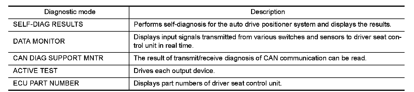 The automatic drive positioner system can be checked and diagnosed for component operation using CONSULT.
