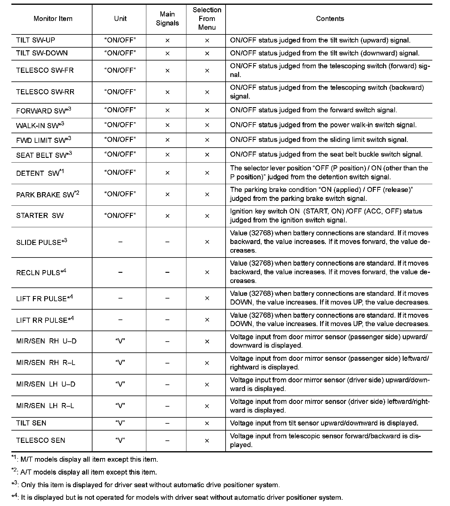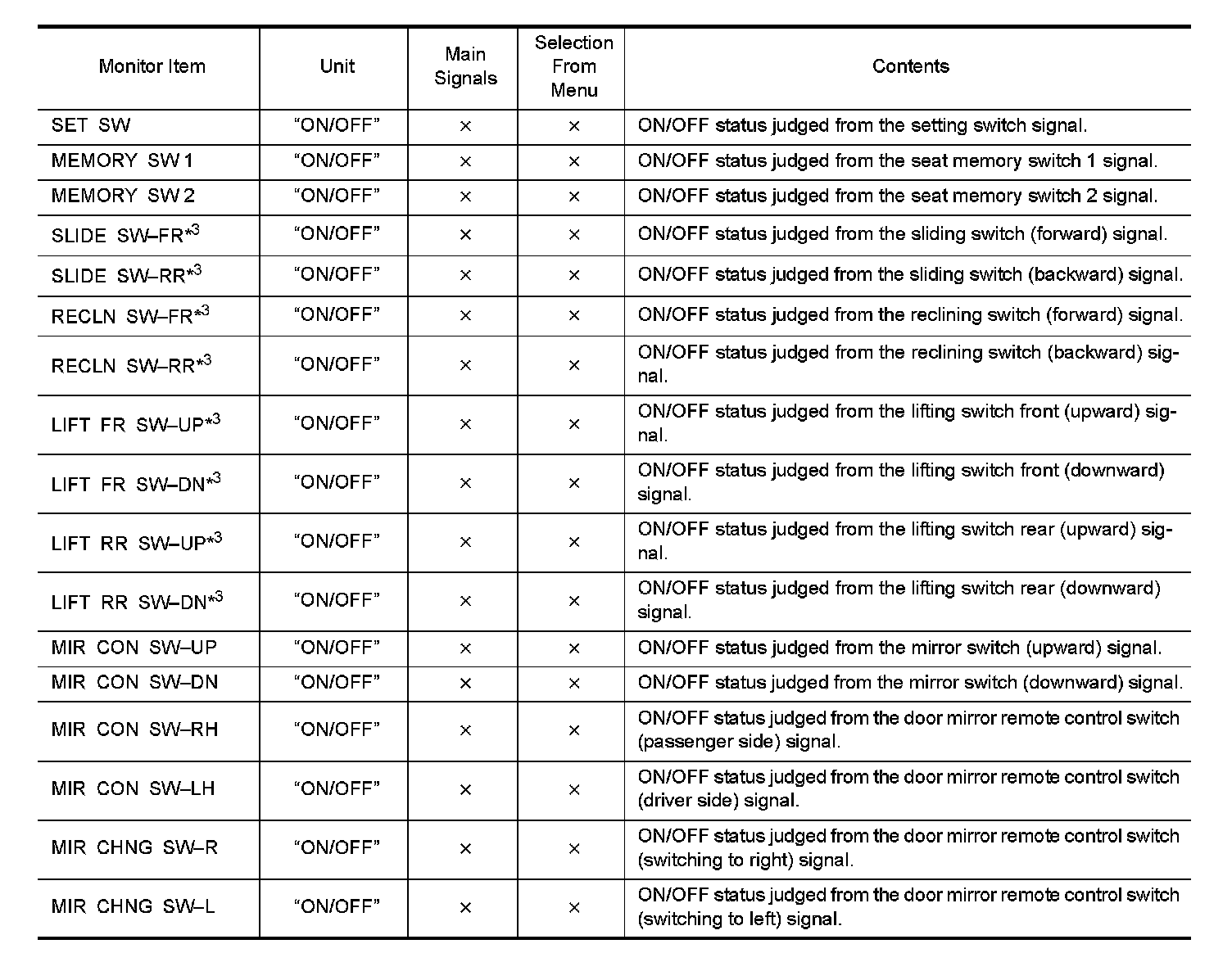 The following table includes information (items) inapplicable to this vehicle. For information (items) applicable to this vehicle, refer to CONSULT display items.