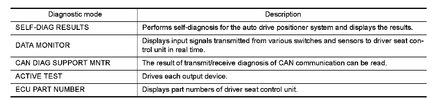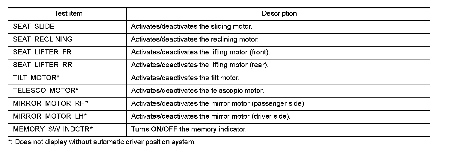 The automatic drive positioner system can be checked and diagnosed for component operation using CONSULT.
