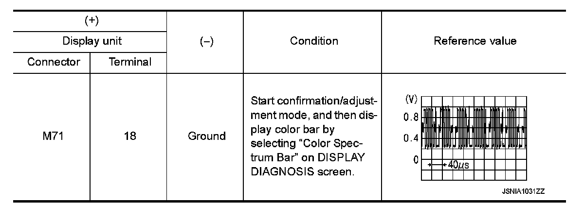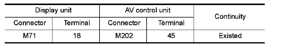 3.Check continuity between display unit harness connector and AV control unit harness connector.