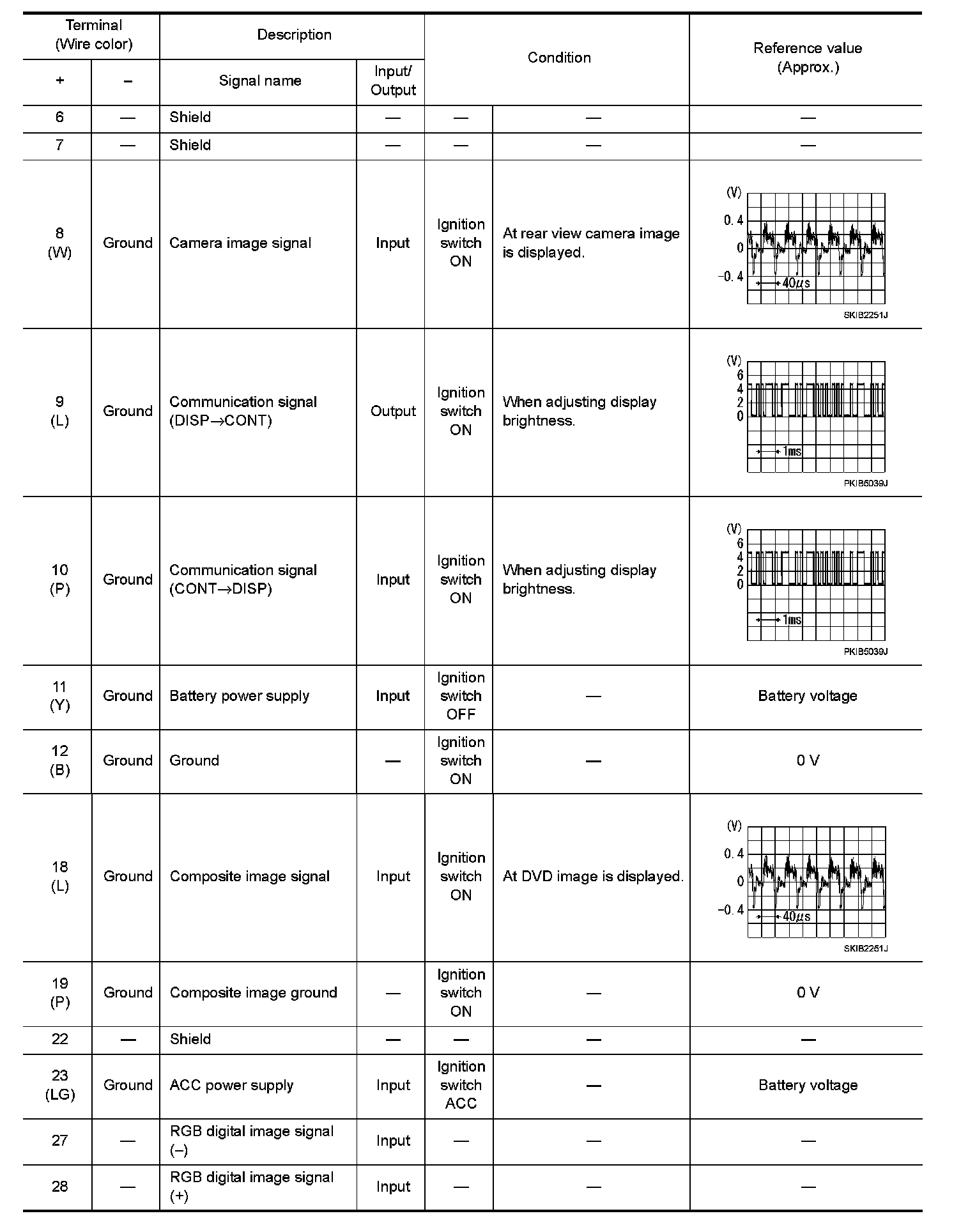 Pinout Values and Diagnostic Parameters