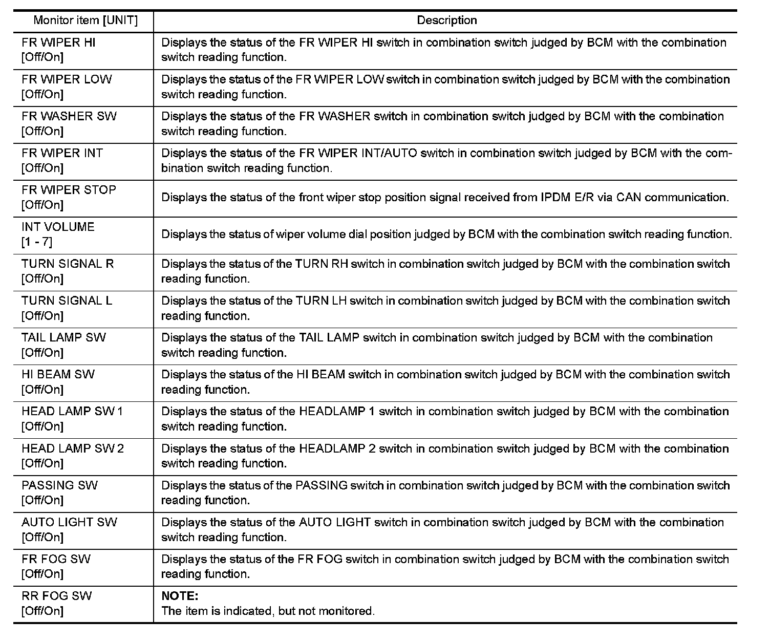 COMB SW : CONSULT Function (BCM - COMB SW)