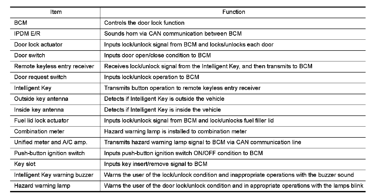 DOOR LOCK FUNCTION : Component Description