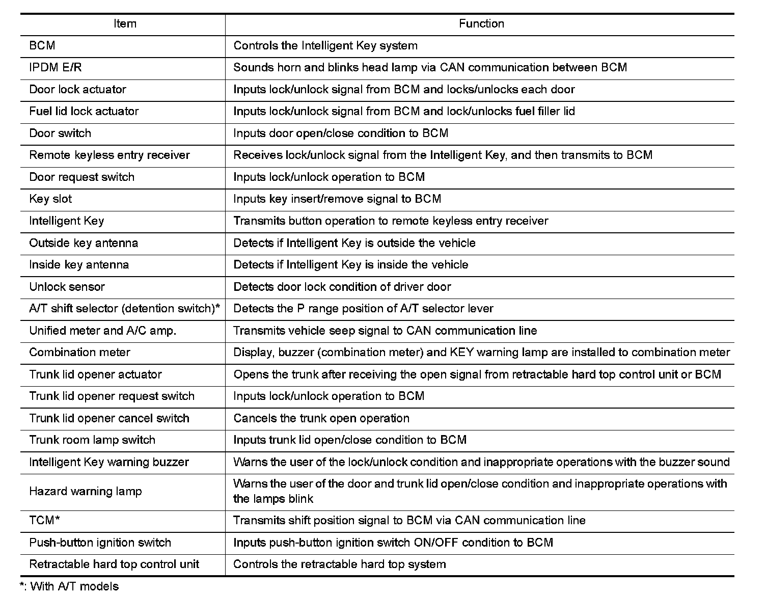 INTELLIGENT KEY SYSTEM : Component Description