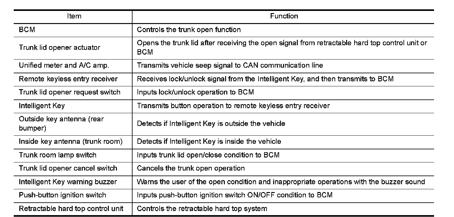 TRUNK OPEN FUNCTION : Component Description