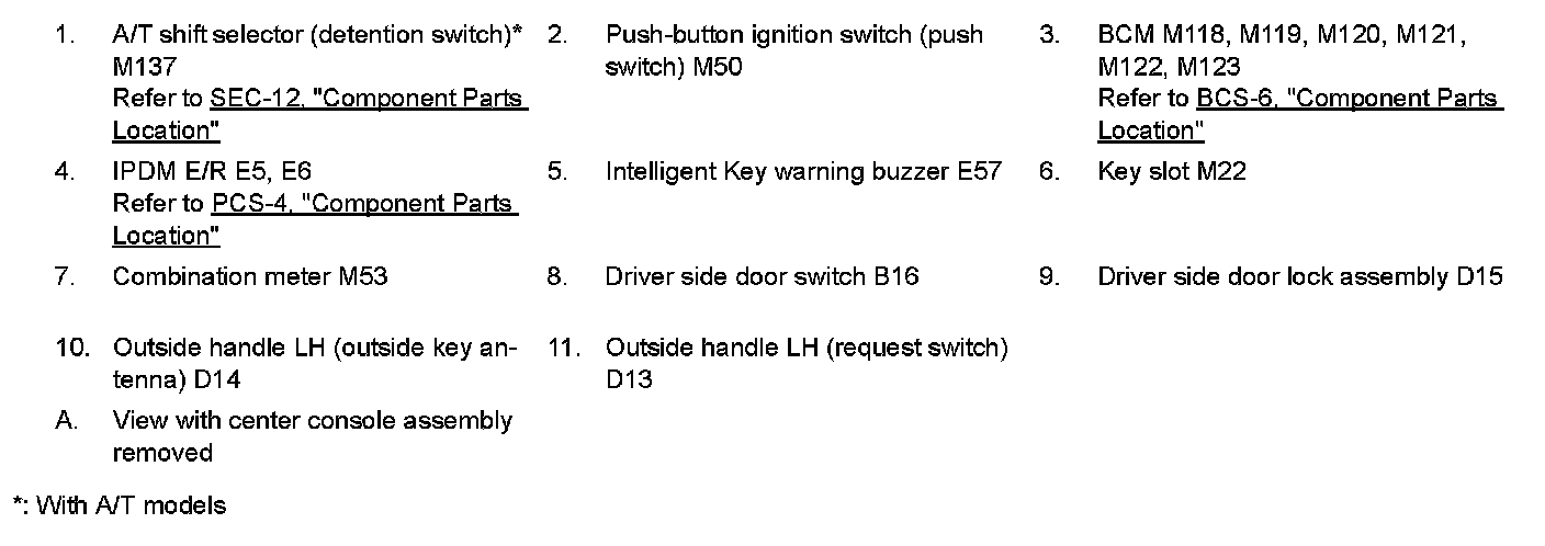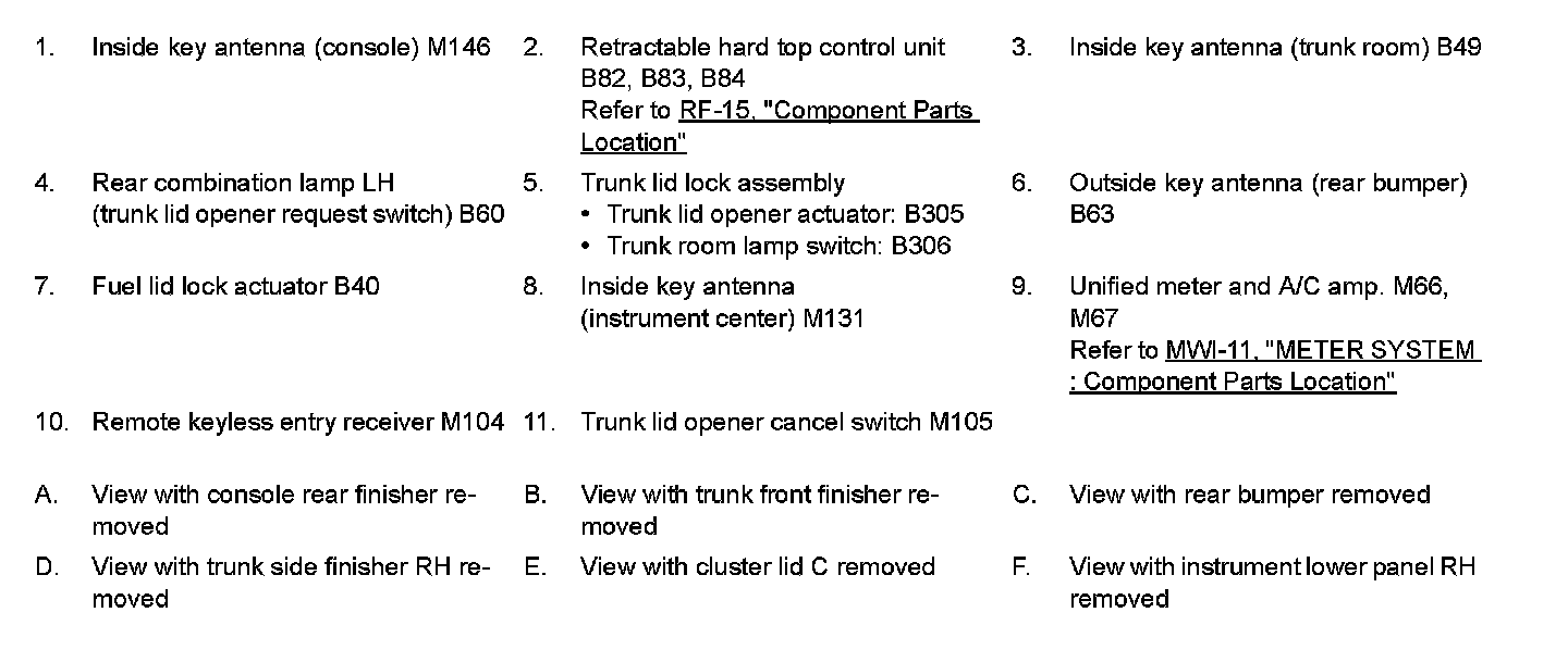 DOOR LOCK FUNCTION : Component Parts Location