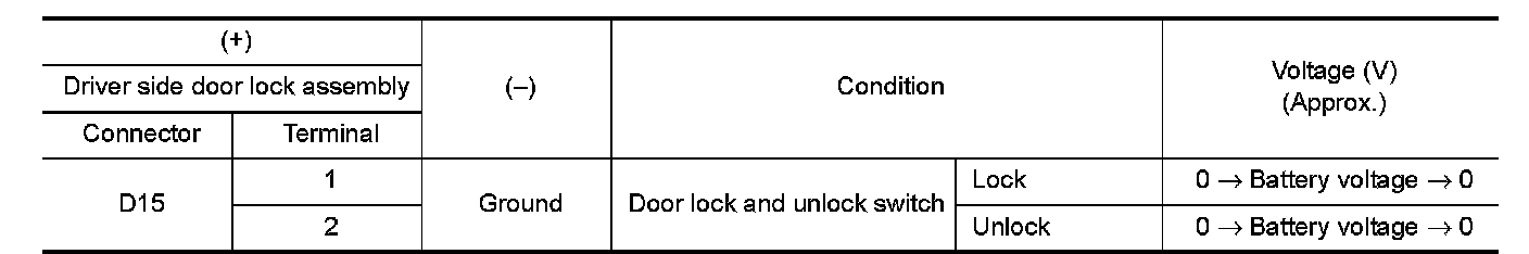 3.Check voltage between driver side door lock assembly harness connector and ground.