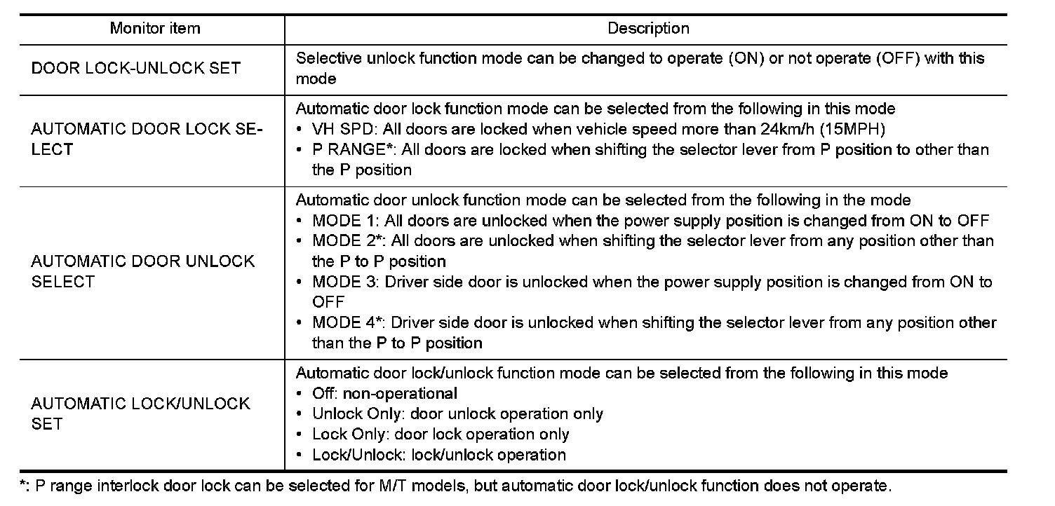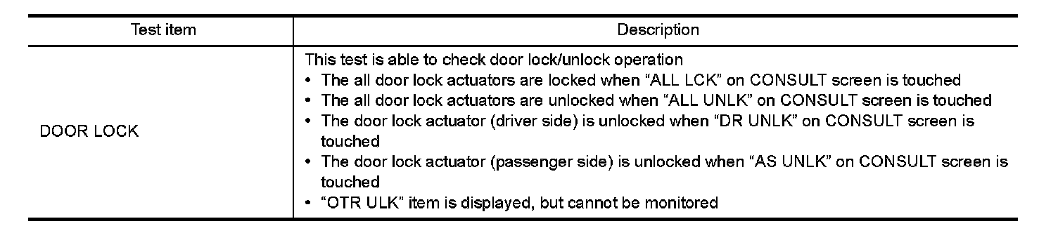 DOOR LOCK : CONSULT Function (BCM - DOOR LOCK)