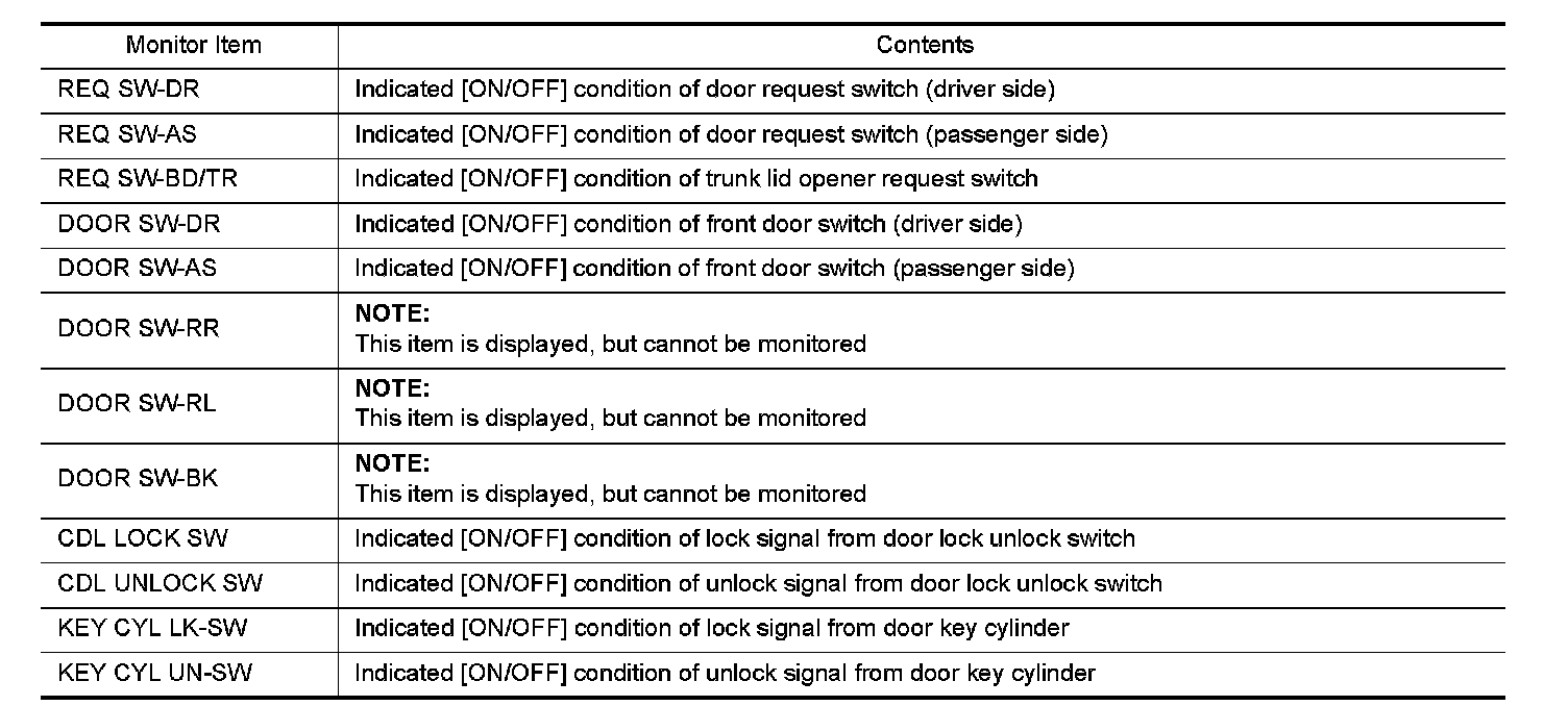 The following table includes information (items) inapplicable to this vehicle. For information (items) applicable to this vehicle, refer to CONSULT display items.