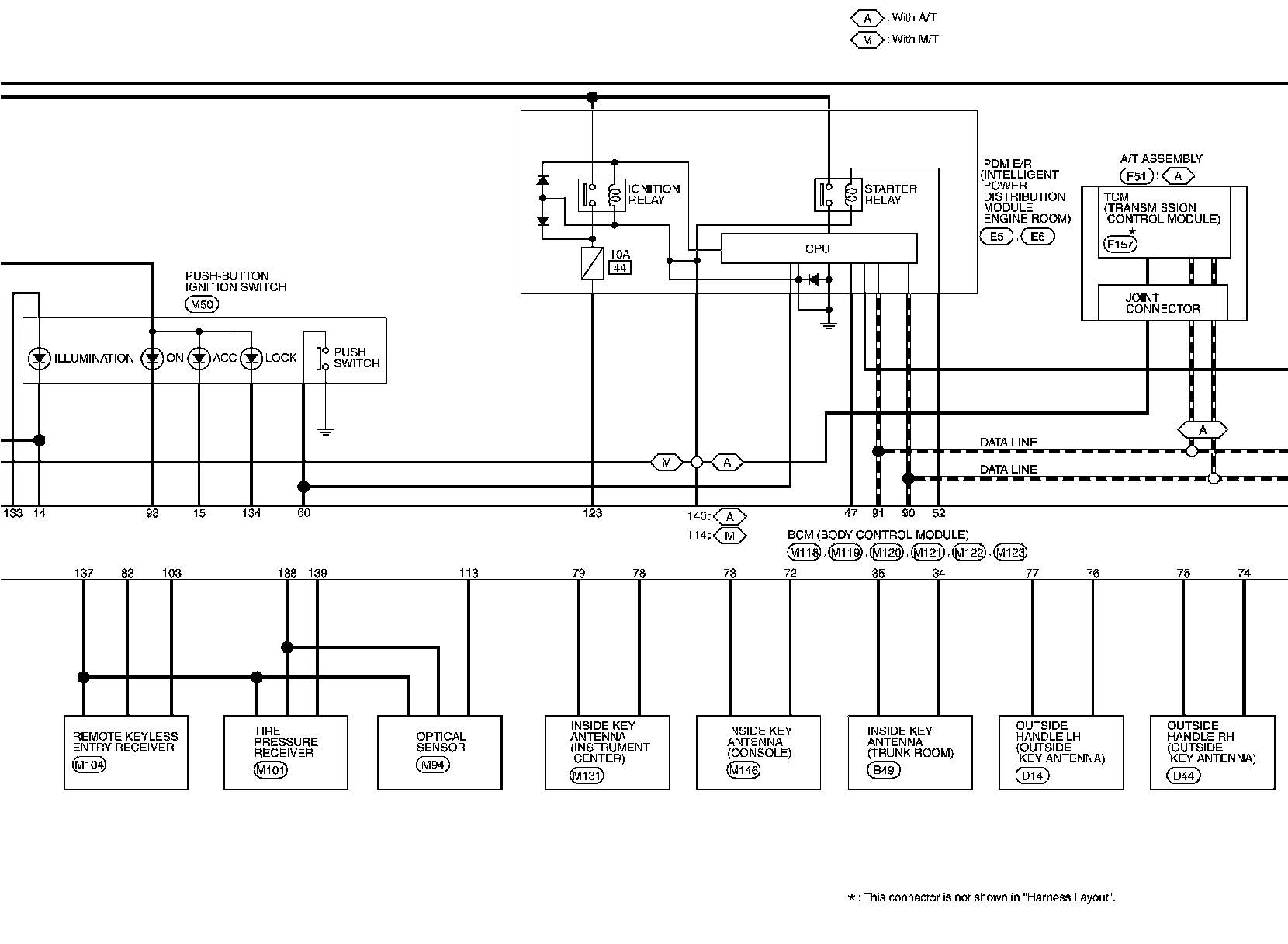 For connector terminal arrangements, harness layouts, and alphabets in a (option abbreviation; if not described in wiring diagram), refer to "Connector Information" Connector Information.