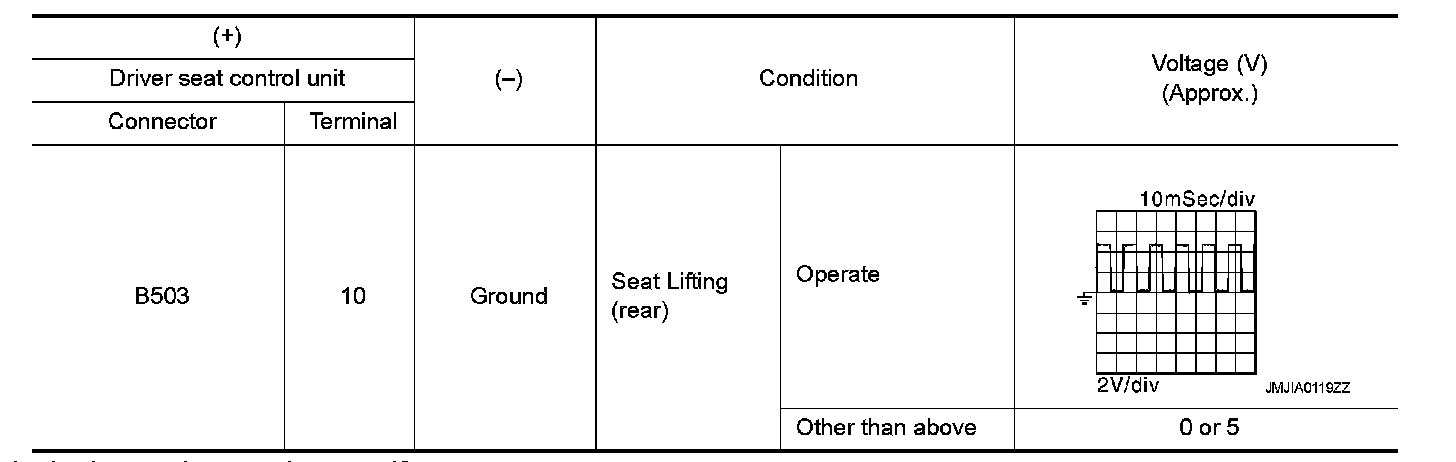 2.Check voltage signal between driver seat control unit harness connector and ground with oscilloscope.